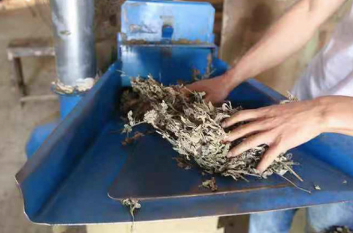 陈放了好几年的艾叶,还需要放在机器里打绒。