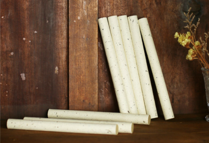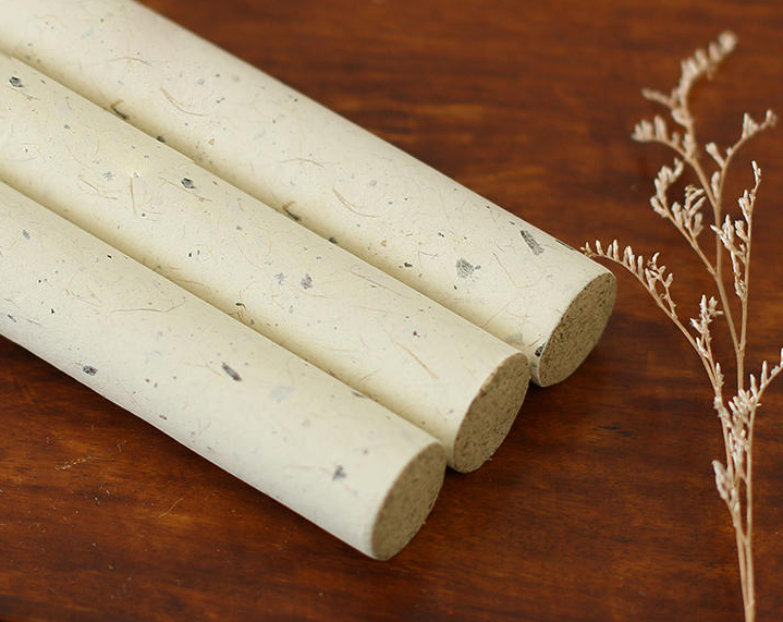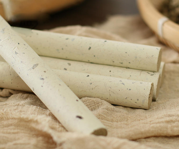 新一批的艾条,我们团队换成了艾叶纸。它是用艾叶打成的纸浆制成的,摸起来更加轻薄、柔软,散发出淡淡的艾叶香。