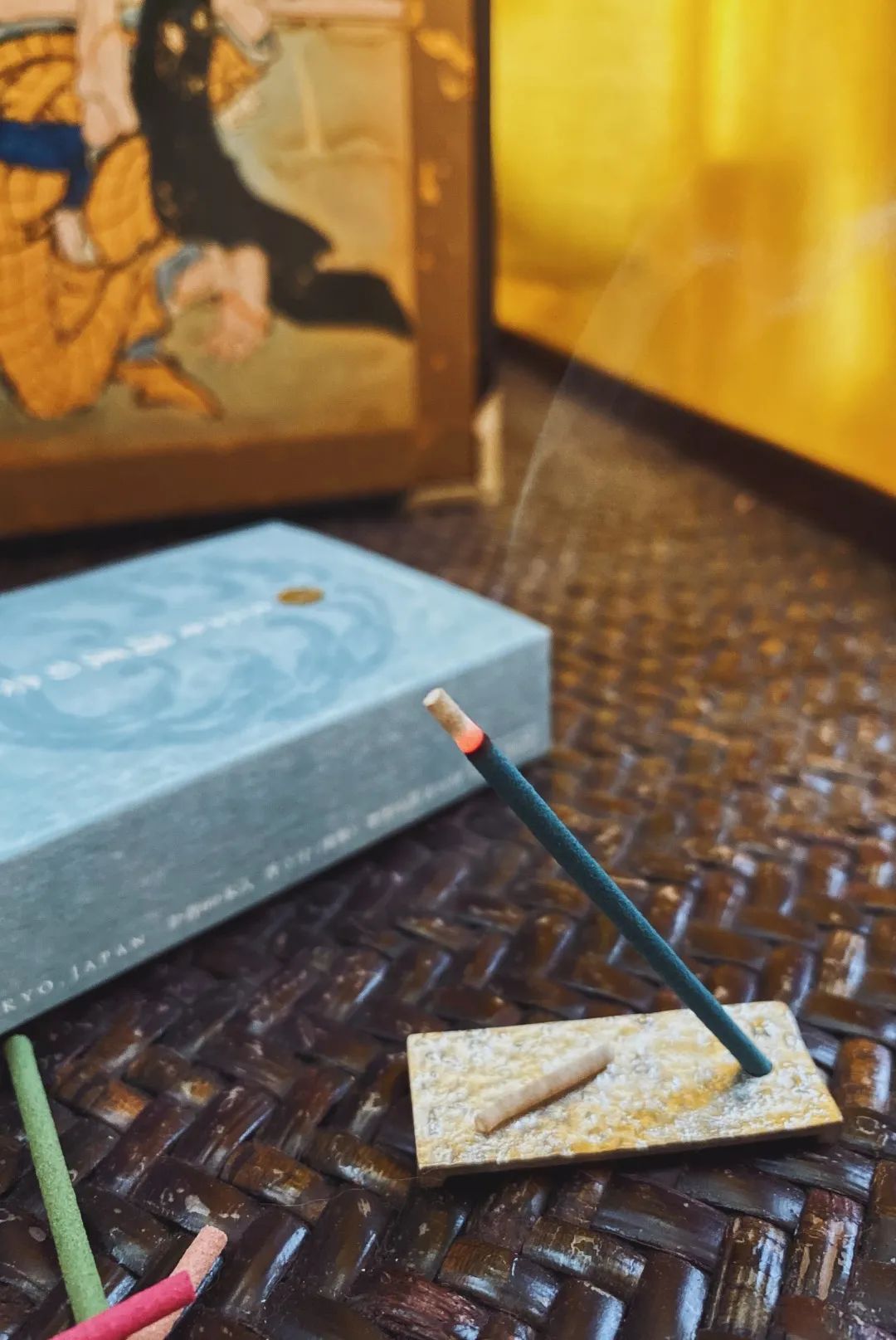 一盒60根,还配锡制香插,这个香插模仿京都庙宇的石阶纹理,手感很扎实。方便出差、在办公室随时随地制造香的结界~