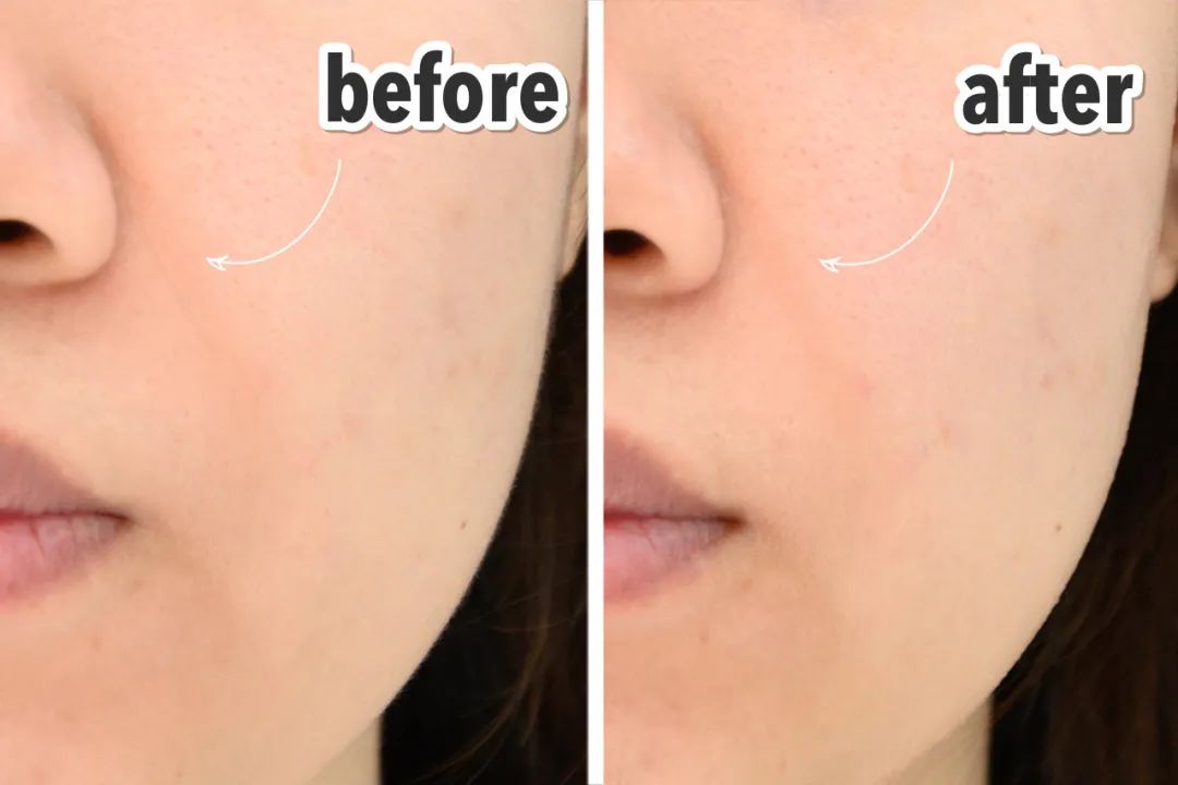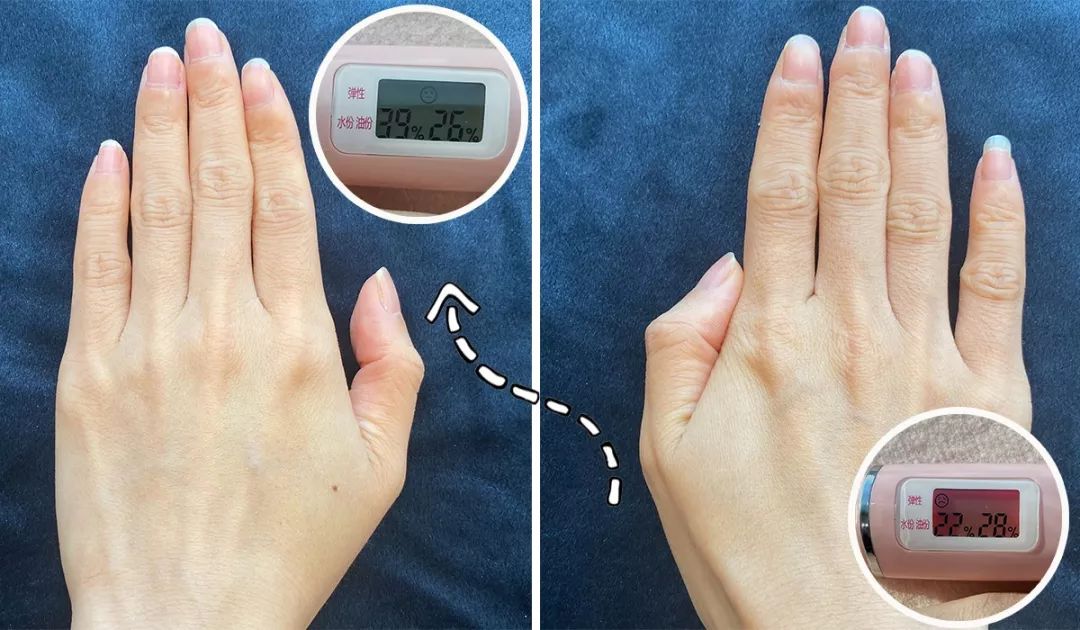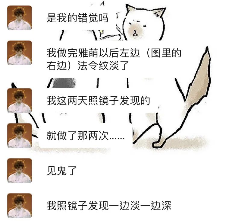 bloom体感也很适合第一次用美容仪的人:三档一键操作,红光模式改善肤色,热量温热不痛。同事泡泡的法令纹比较明显,做了6分钟,最深的纹路淡得很明显👇(细节无ps处理)