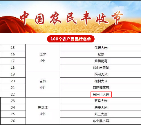 “长白山人参”品牌连续结出累累硕果——荣膺中国农产品网络品牌五十强第二十四位;