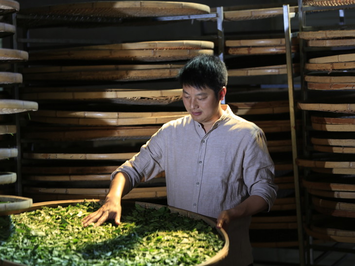 【言墨】在制作时,采用晴天日晒脱水,自然萎调的古法制茶技术。再经过匠人制茶,碳火烘焙,人工拣剔,这一饼【言墨】才算初成。