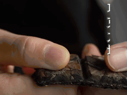 压制,是一饼白茶升华的际遇。这次,我们要做一饼不一样的老白茶。在压制【言墨】时,采用新型压制工艺,将茶饼制成薄饼巧克力块状,痕纹紧直,轻松掰折。