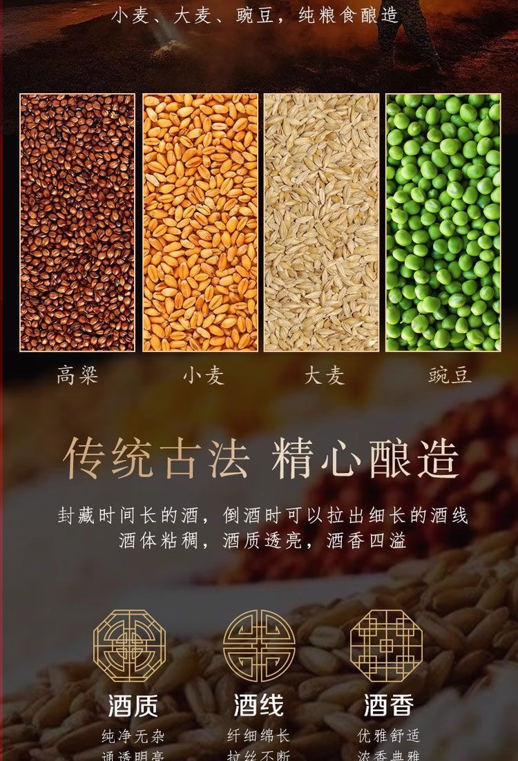 📦 信息透明:酒标清晰标注原料、等级、厂家信息,纯粮酿造无添加,品质看得见;