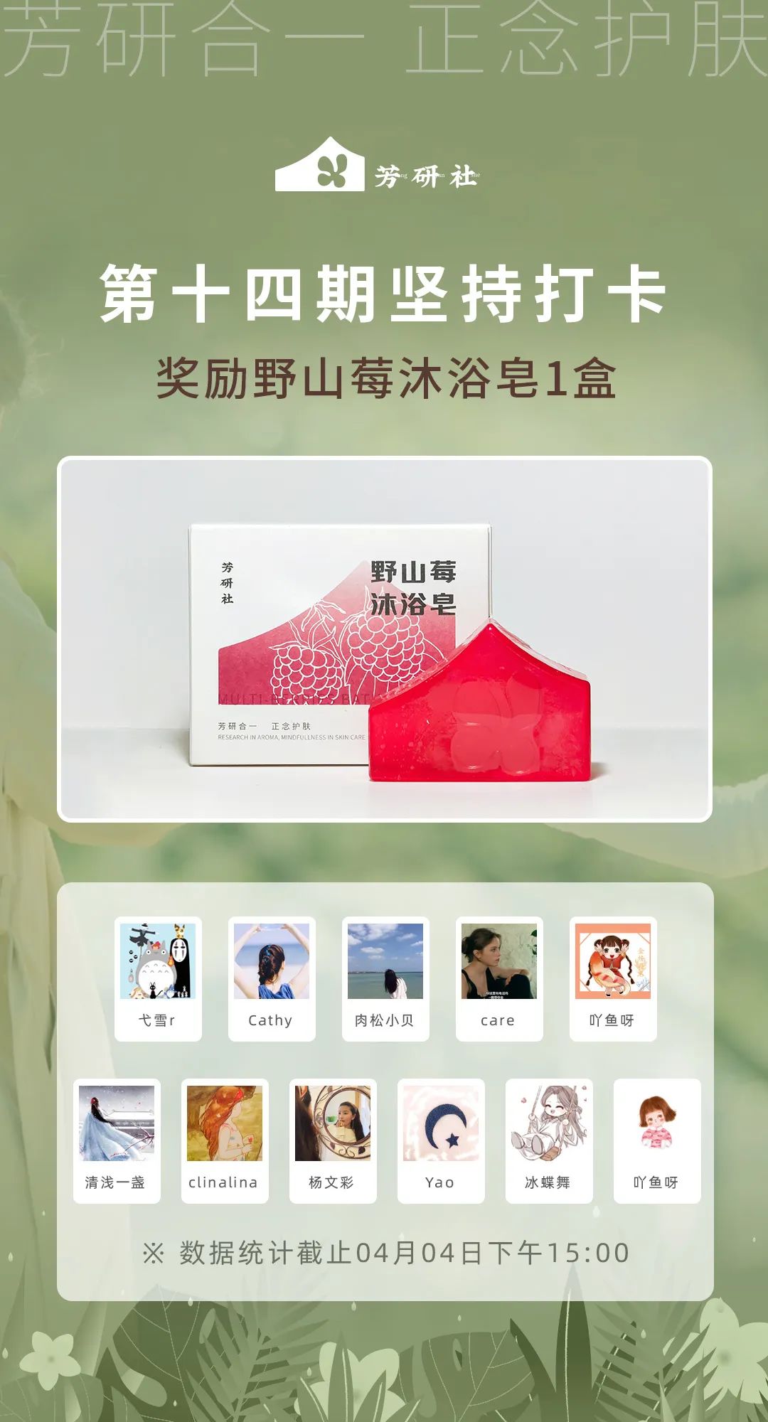 我们发现这一期参与打卡的人越来越多了,所以这一期能够拿到奖品的人也非常多,这一期的小奖励是野山莓沐浴皂,不管是从颜色上来说,还是从气味上来说,都非常适合春天,香香甜甜的,有春天的小浪漫在里面。