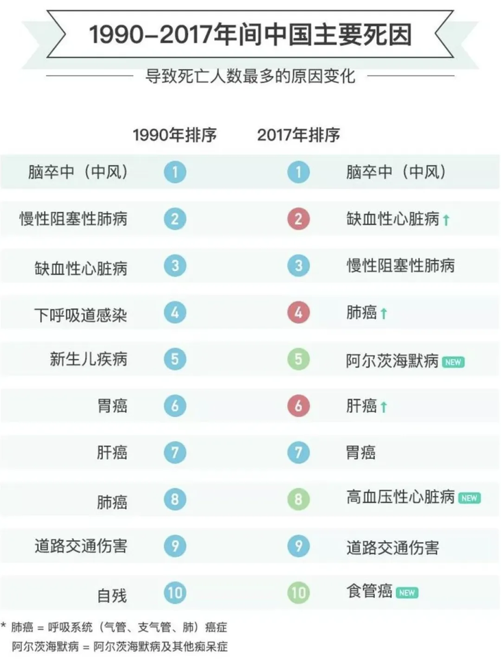 特别是30岁后,很多突发疾病的死亡率直线上升,中风、心脏病、高血压…都高居死亡原因前十名。