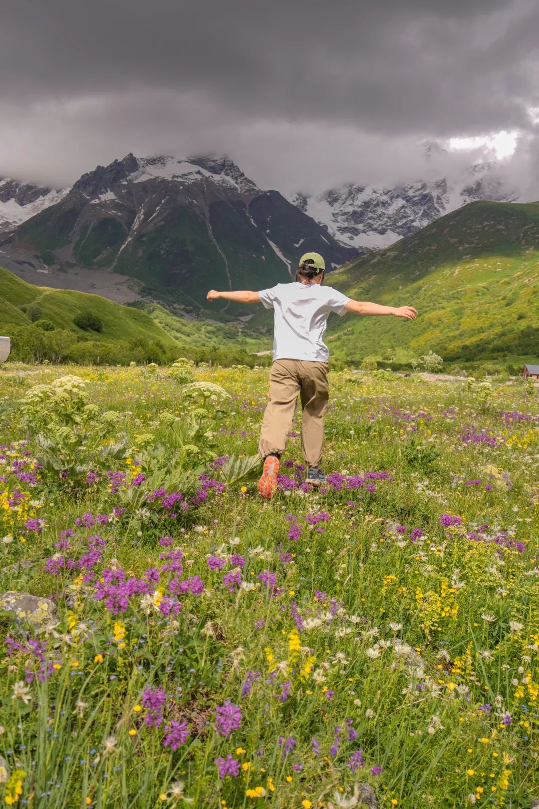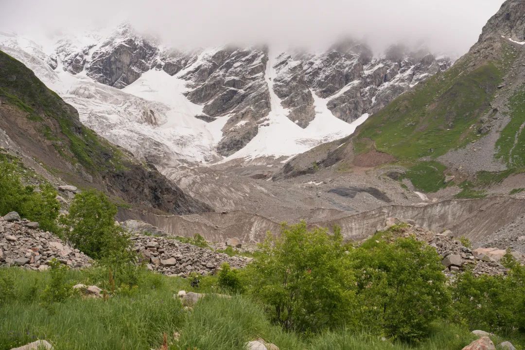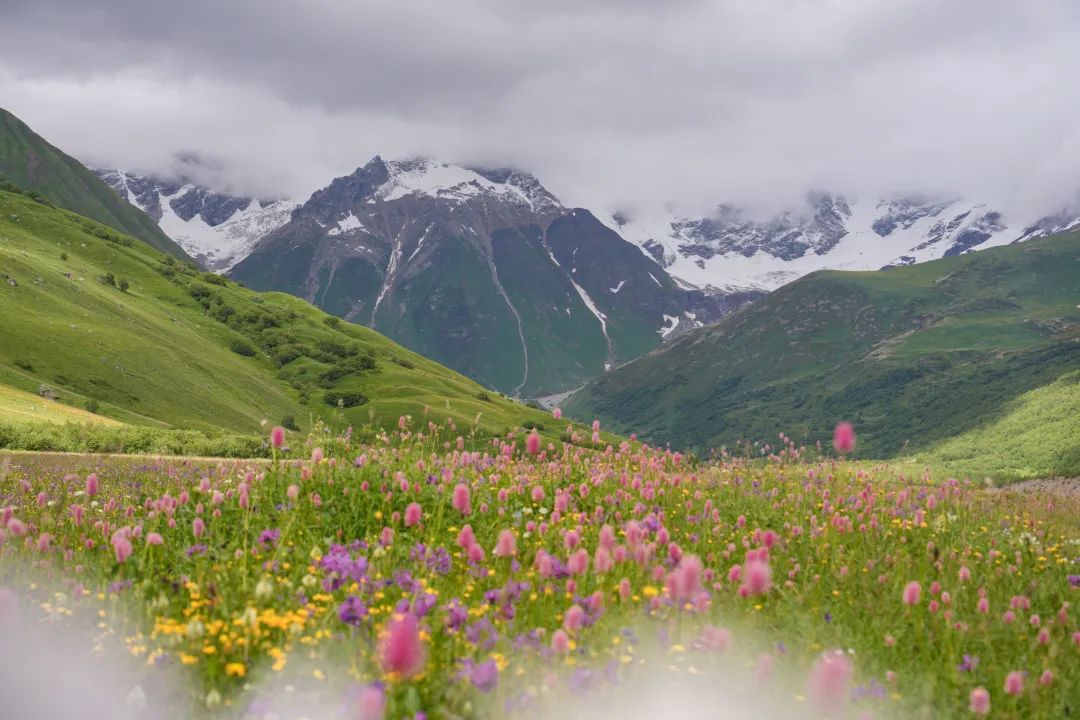 图@子君-Shkhara冰川线回乌树故里的路终点冰川混杂着大量的泥土乱石,显得脏脏的,既不壮观也没有美感,与国内很多冰川线都没得比。反而是回程一路的山花如梦如幻,仿佛闯进《海蒂和爷爷》的电影里,令人念念不忘。