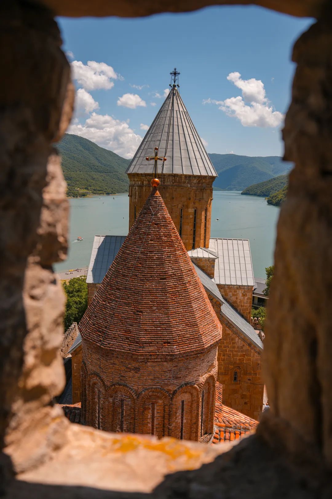 图@子君-孤独星球封面同款安纳努里城堡(Ananuri)Ananuri位于第比利斯去往卡兹比克的路上,据史料记载,它曾是13世纪阿拉格维封建王朝时期领主的私人军事城堡要塞,旧版的《孤独星球》外高加索版曾以这里为封面,它是格鲁吉亚最为著名的地理名片之一。