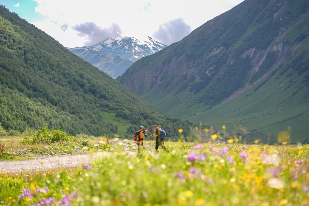 图@子君-小众秘境Juta Valley,徒步探寻世上第二个阿尔卑斯少女峰Chaukhi雪山juta徒步先要在河谷里走一段机耕道,两岸山花摇曳(入秋后彩林应该非常漂亮),随后通过小径爬升至视野开阔的草甸,视线尽头即是山石崎岖的Chaukhi,有那么一瞬间恍惚觉得类似多洛米蒂的白云岩。特别注意:10月-5月通往 Juta 村的道路可能被封锁