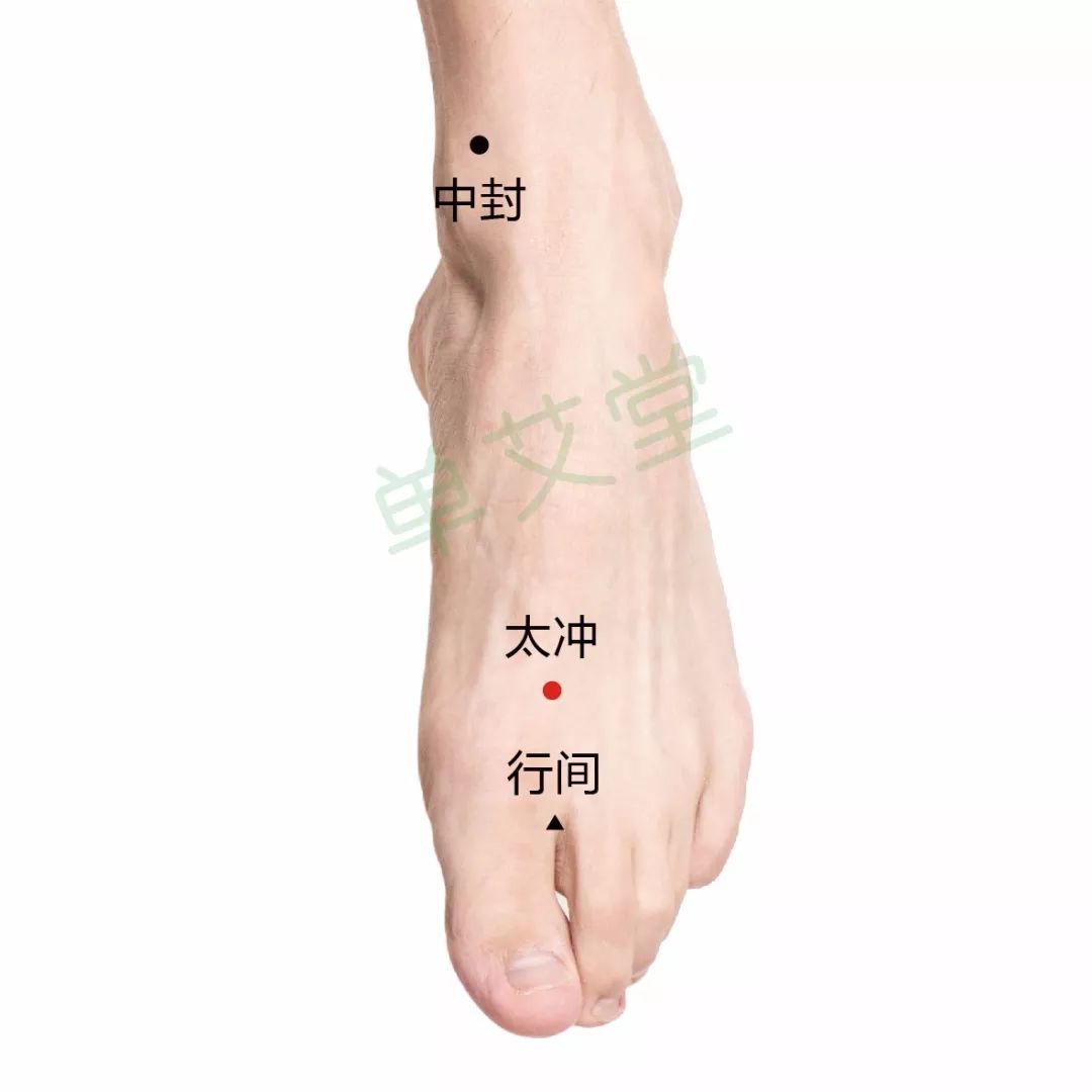 太冲穴:在行间上二寸的凹陷中。