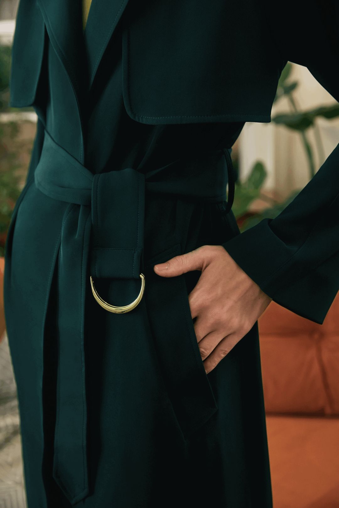 它的颜色是我们调整了好几版、最后做出来的显白墨绿色,
