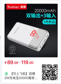 2W毫安充电宝; 小巧且带数显,上飞机可带;适合一周出行!户外不断电,就靠它了。