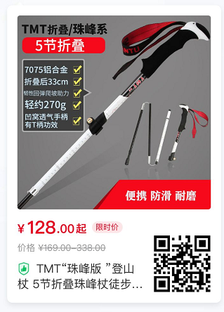 一款折叠登山杖收纳33cm,可以塞进随身包