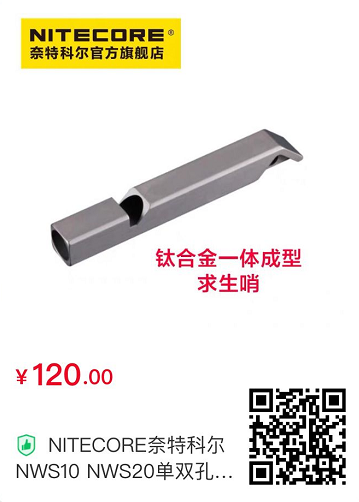 NITECORE奈特科尔NWS10 NWS20单双孔求生哨高分贝户外救生口哨子钛合金一体求生哨高达120分贝、轻量化、强度高、抗腐蚀性强、不过敏,安全性好’