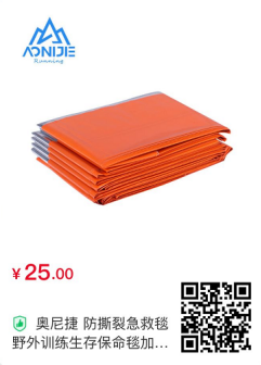 其主要功能是在紧急情况下起到防寒保暖作用。我们可以看到,急救毯双面分别镀上了银色和金色铝箔,其功能是利用反射原理,利用铝箔将我们身体的热辐射进行反射,减缓人体热量的散发从而达到保暖的作用。其发射率高达90%。