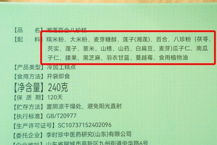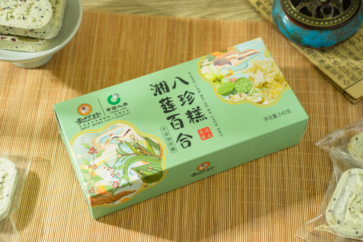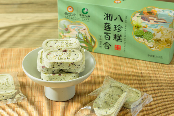 我们将这些意见反馈给厂家后,厂家改良了制作工艺,推出了全新口味——「李时珍·湘莲百合八珍糕」。