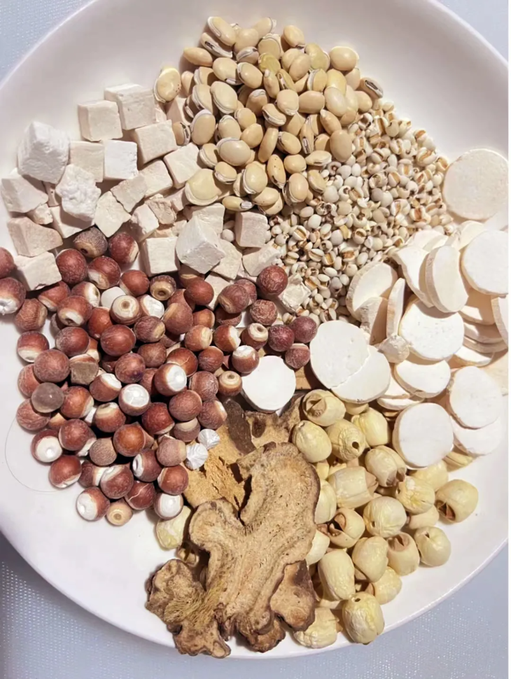 对原方的食材做了优化,改良为:茯苓、芡实、莲子、薏米、山楂、山药、白扁豆、麦芽等。