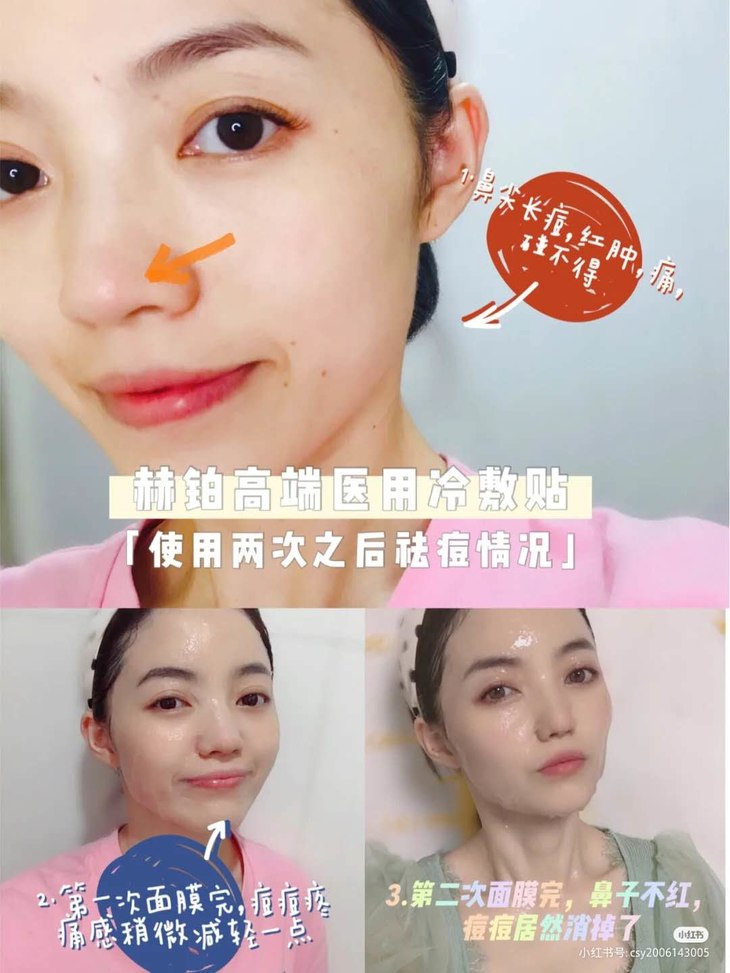 ,赫铂细胞液一直用,没严重也没好,听皮肤管理老师的专业建议,用【高端医用冷敷贴面膜】-械字号加持,连续用了两天晚上,痘痘居然就好了,这效果才是杠杠滴好哦‼️