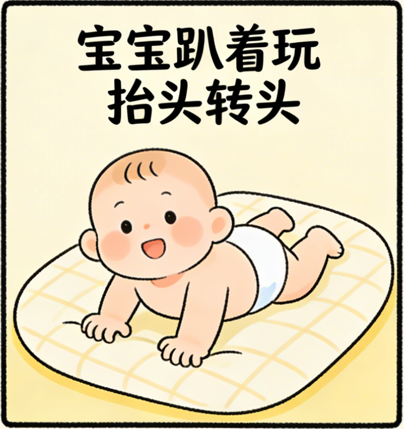 4.多趴着玩:在宝宝清醒时,让他多进行俯卧(趴着) 。这能强化颈部、背部肌肉,促使宝宝为了观察周围而主动抬头、转头,是极佳的自主锻炼。