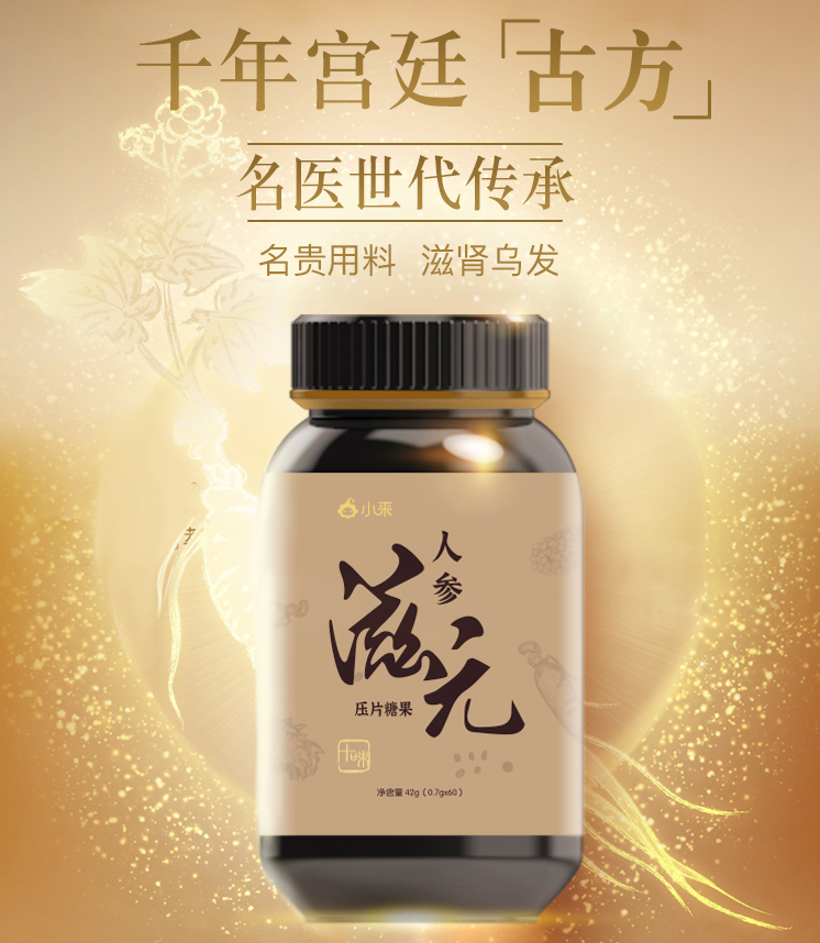 小来在清朝皇帝乾隆的御用补肾膏方—五黑膏配方的基础上,结合现代男性体质,特邀三甲医院中医,采用同仁堂同厂工艺,打造了这款补精益肾的——十味人参滋元片。