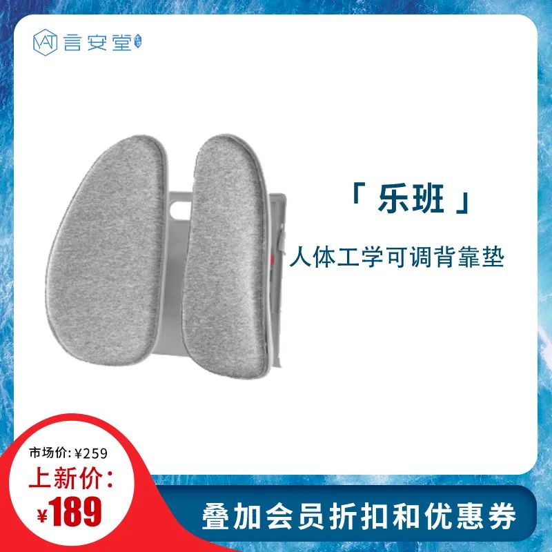 除了瓶装的,我们也贴心的上架了条装的,放在包包里更加方便。白惜漱口水瓶装410ml 蓝莓味/薄荷味/凤梨味,上新价69.00,白惜漱口水条装20/盒 蓝莓味/薄荷味/凤梨味,上新价39.00,上新期间,第二件半价哦~ 我们大多数的人,每天在电脑前坐着的时间基本都大于8小时,一边握着鼠标,一边打字,一会儿抬头,一会儿低头……据调查显示,因不正确坐姿而带来的身体负担人群达到75%没如果不加以注意和改善,问题会更加严重,例如苹果的颈椎,已经到了时常要靠止疼药续命的阶段了。所以,一些符合人体工程学的产品越来越受职场人士的欢迎。大家记住,永远都不要让腰部悬空。市面上大多背靠在产品功能、形式、设计上都高度雷同,调节方式也非常的复杂,用户体验很差。乐班的这个背靠,创新一键升降,操作起来非常方便,即使是手无缚鸡之力的小女生,也可以轻易操作,85mm的升降范围,完美贴合大部分人的身型。环抱式承托,自适应调节结构,让背部承托更舒适。背托的形状采用双曲抛物面设计,形成环抱式承托结构,给腰背提供良好支撑。上图为乐班人机工学背靠与其他人机工学背靠压力分布对比图,图中可明显看到乐班人机工学背靠压力分布比竞品更平均。下端为直径3.0mm扭簧,能够稳定支撑来自腰部的压力,上端为直径2.8mm扭簧,灵活承托来自背部及肩膀后倾的压力柔软布套,温暖舒适,背部可精准对位背靠孔位,安装便捷,防止移位。作为作者,本来想假公济私,把靠垫带回家用一段时间,结果被办公室的同事拒绝了,因为每个人都发现用完以后,就离不开了。长时间不正确的坐姿,其实已经给我们很多人造成了一定的困扰,再加上我们生活中和运动中的一些不正确的姿势,更是给我们本来就不够“健康”的形体雪上加霜。所以,日常家务和运动的时候,佩戴一个护腰带,还是很有必要的,尤其对于那些久坐不起、腰部有损伤、以及健身人群的人而言,更是需要一个合适的护腰。而市场上排名前十的产品中,无简易调节功能,使用不方便,材料单一,锁扣容易对皮肤造成伤害,长时间佩戴不调整松紧,可能对内脏造成挤压。而运动护腰和保健护腰造型都十分老旧,医疗器械感十足,缺乏创新与设计感。而乐范这款护腰带,采用FIRMAX滑轮组快速加压机构,利用1:6低扭滑轮组机构,可以让我们自主调节护腰的支撑与加压,操作非常方便。