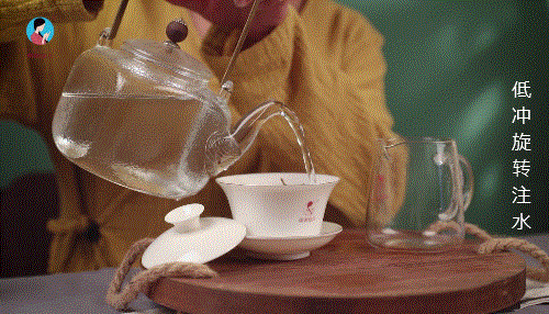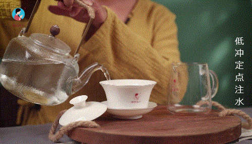 若是冲泡的茶块较为紧结,注水的节奏可比平时放慢一些,注完水后,不用盖上盖碗盖子,静候几秒再出汤,这样比较利于紧结的茶块散开,更好的溢出茶质。
