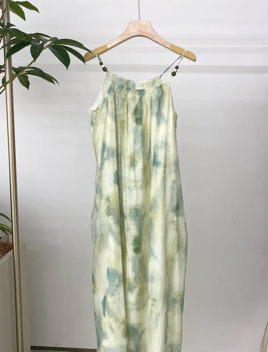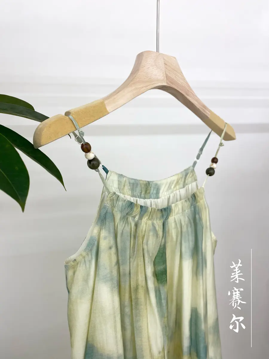 而【一泓澄绿】主要结合油墨晕染花色,抽绳领口会更带休闲度假风味,结合串珠增添中式感,同时面料是采用莱赛尔纤维,上身会更加爽滑凉快,夏天追求舒适的美美千万不要错所,拍照非常出片哦~