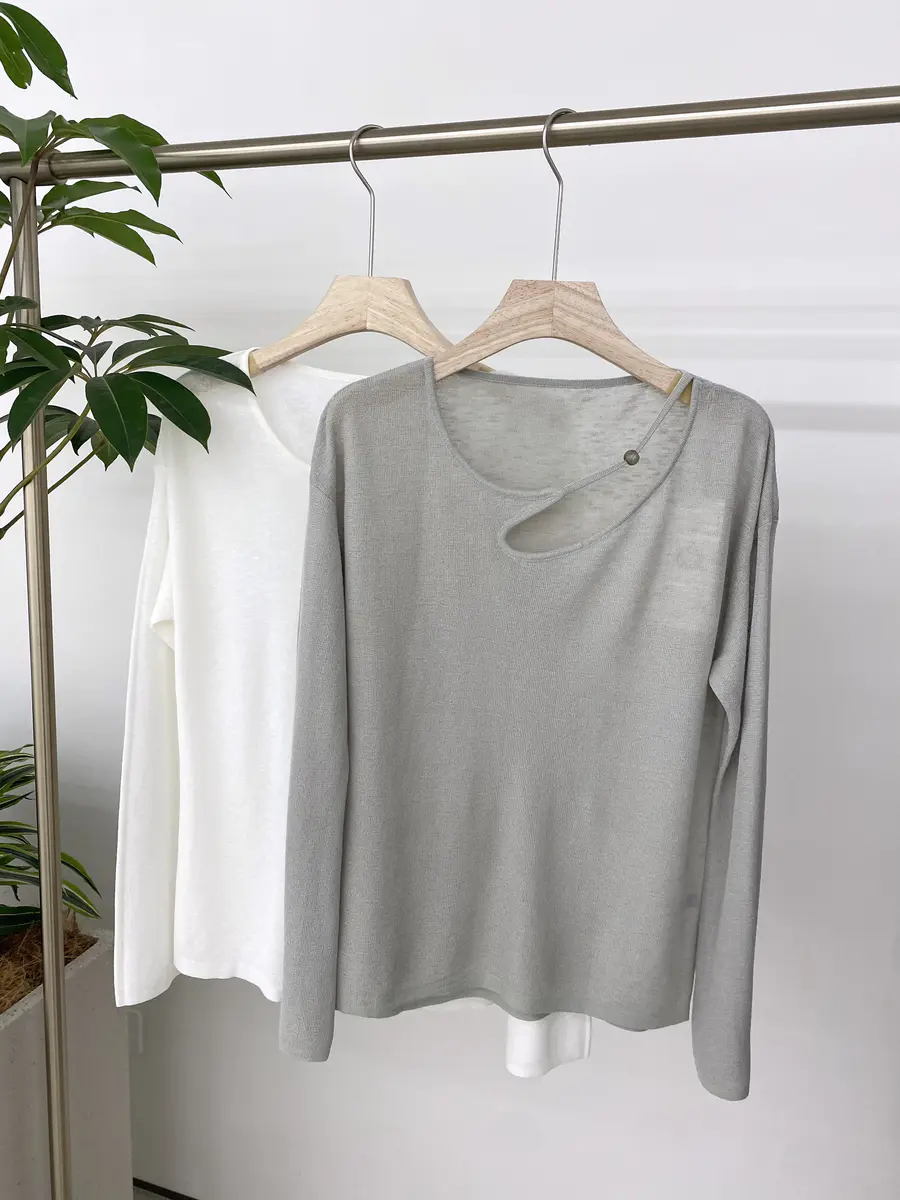 这次最推荐的就是这款【云破天青】薄款针织衫,真的可以用薄如蝉翼来形容,完全可以实现夏天还能穿长针织!