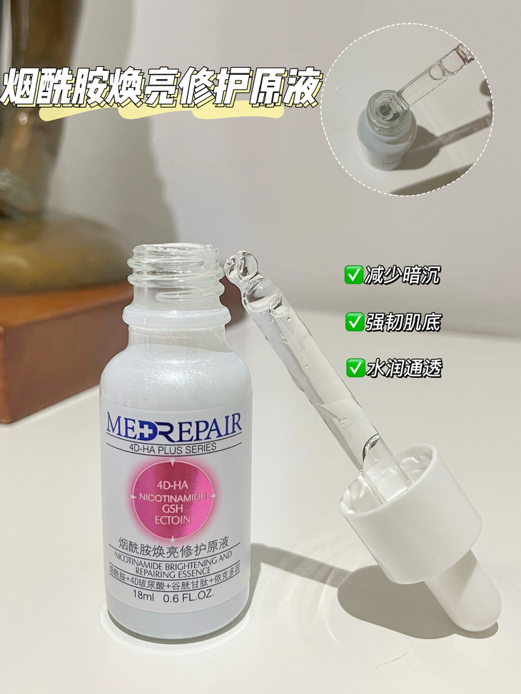 暗沉星人看过来!精纯烟酰胺直达肌底,开启淡化暗沉倍速模式,更有谷胱甘肽和依克多因后续加持,白成一到闪电的同时强韧肌底。