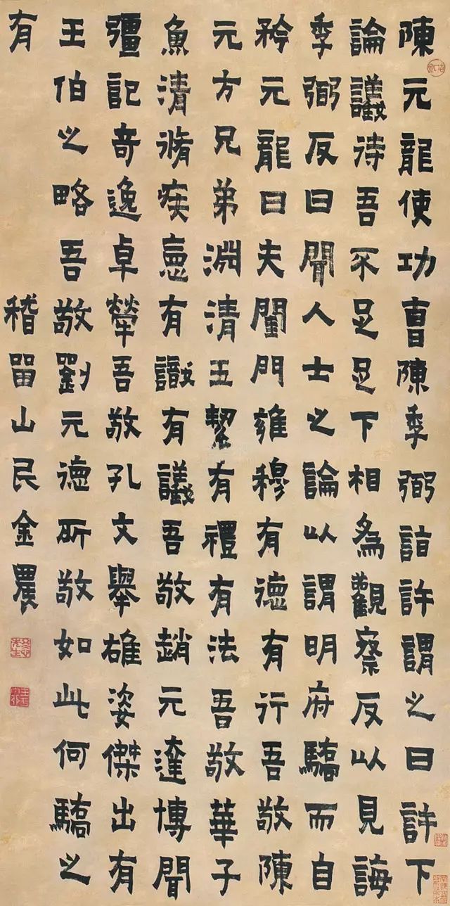 六、忌书眼过多,随处是眼等于无眼;但也要考虑,中间一行是作品的重点。一幅作品中,要有几个突出、精彩、有个性的字,此亦名“书眼”,大小字变化相间,轻重字参差错落,才能“放逸生奇”。