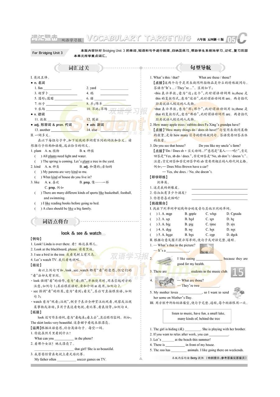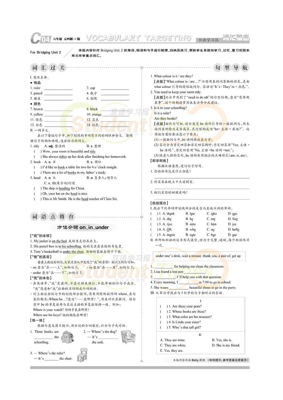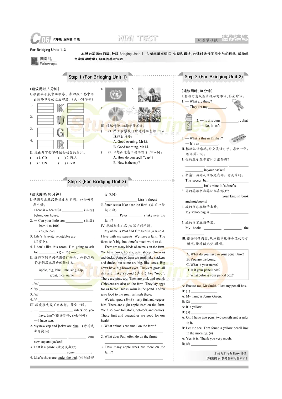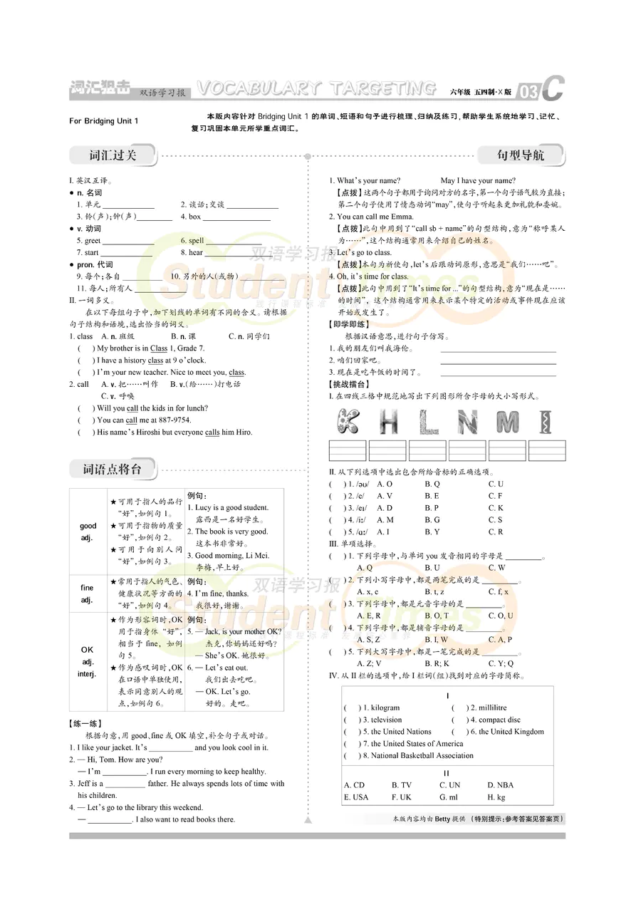 初中英语样报 六年级 五四制 X版 同步辅导 C刊