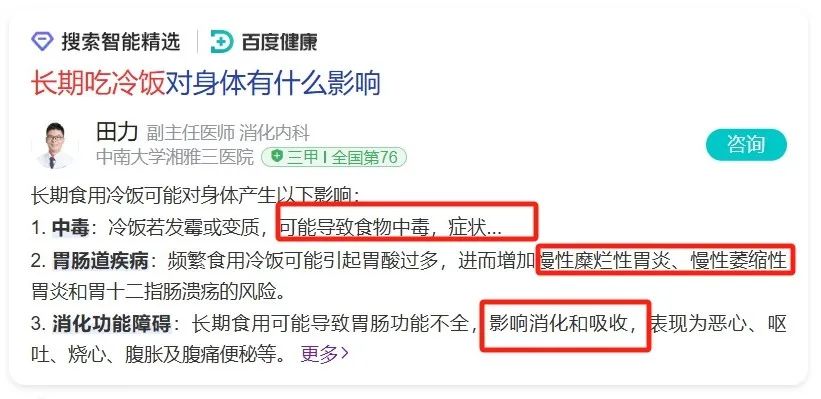 二是:冷饭冷菜下肚影响身体健康。常吃冷饭容易降低消化系统和免疫力的下降,还会对健康有很大影响!