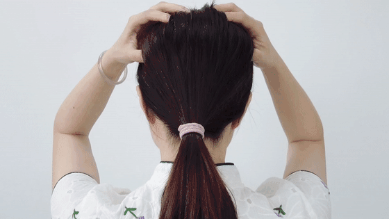 3、用手指由头顶百会穴向四周按摩,重复3次。