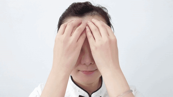 2、用手指沿前额往后脑勺处按压,重复3次;