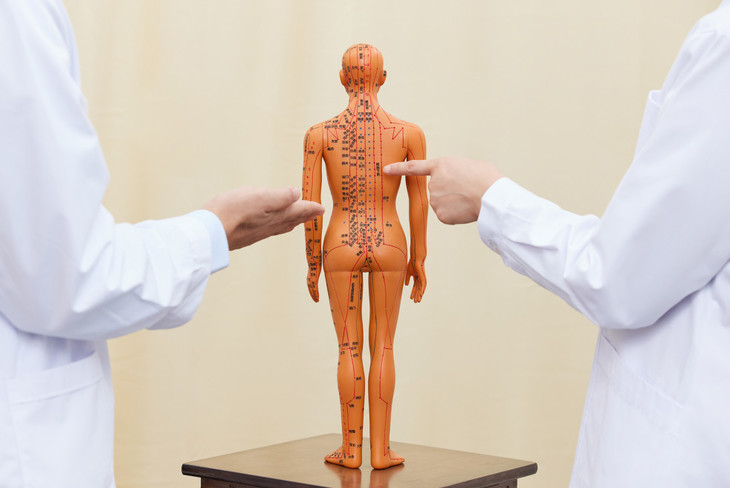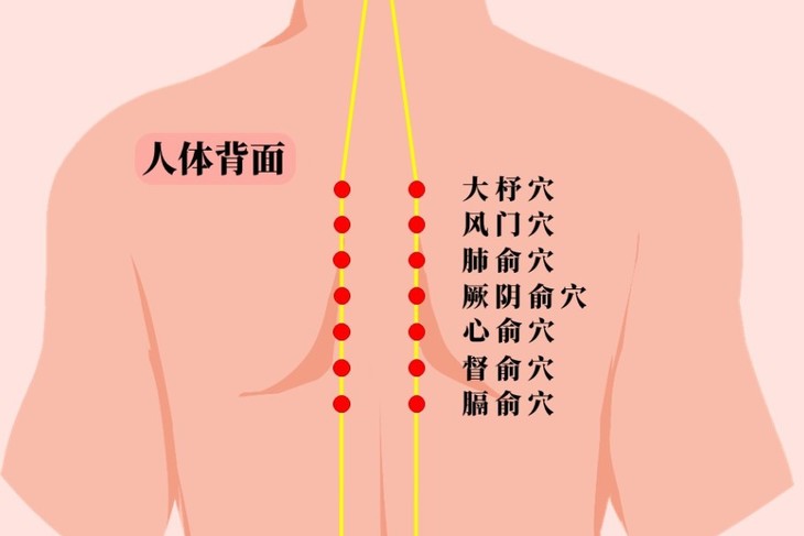 夹脊关,也就是后背上两肩胛中心、脊柱两侧的区域,此处膀胱经易堵塞。