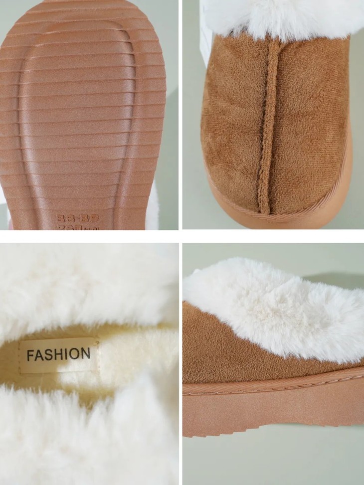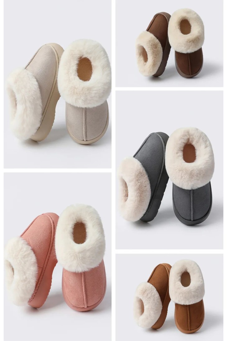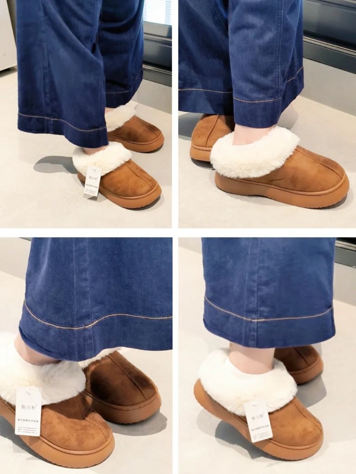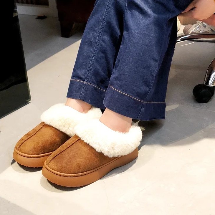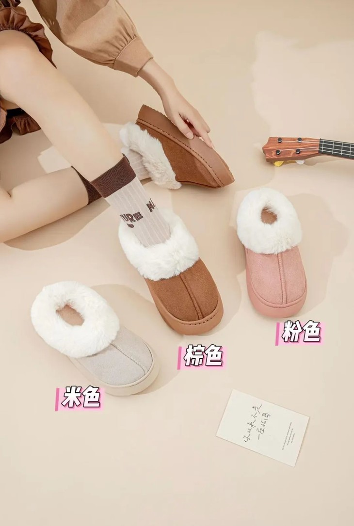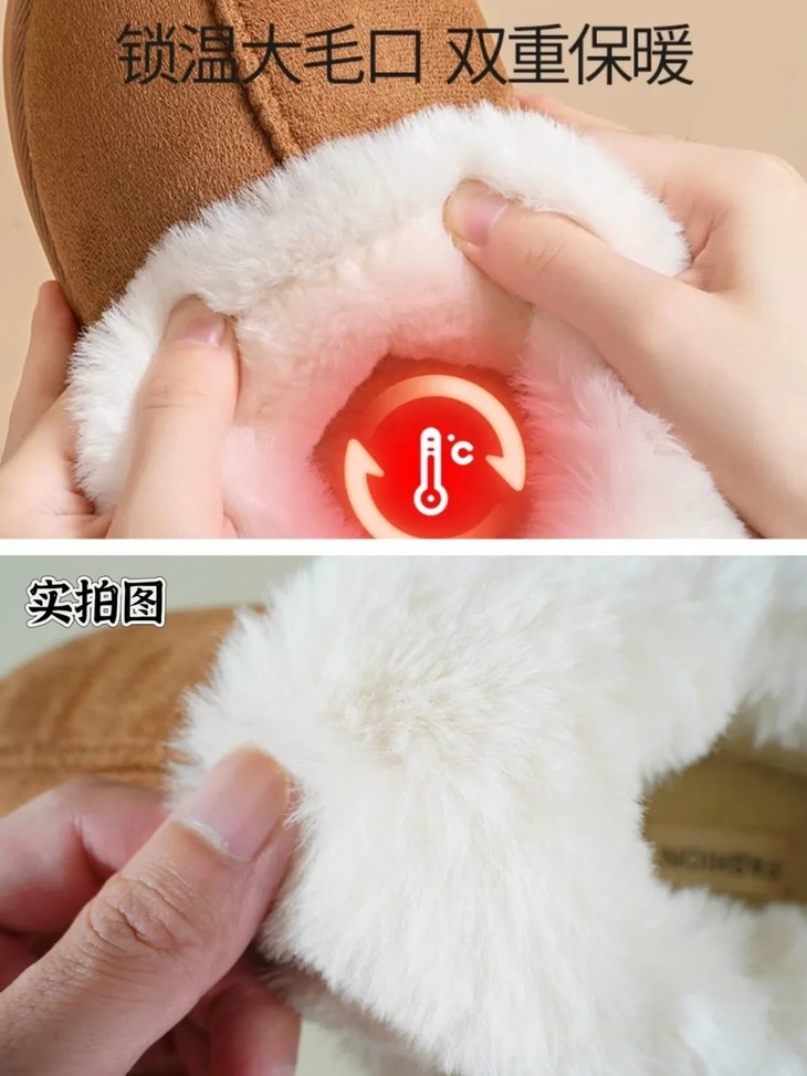 这款棉鞋做了全包设计,外层麂皮绒+仿兔毛绒包裹+PVC软鞋底,真的下了血本。