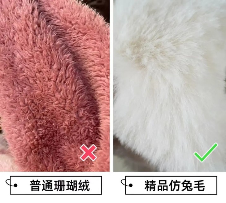市面上大多数棉鞋都用珊瑚绒,而仿兔毛比珊瑚绒更贵更好。