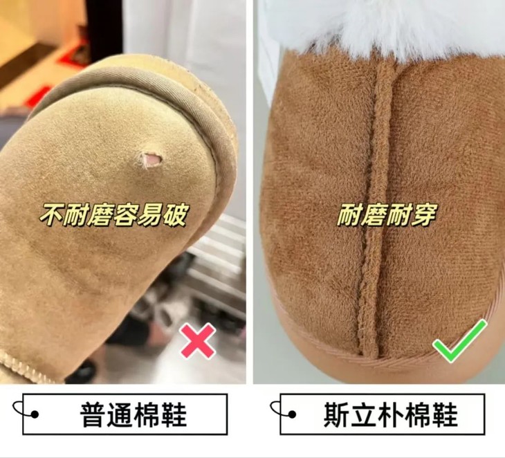 咱们来看看普通的棉鞋和麂皮绒做的棉鞋有多大: