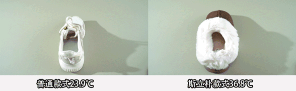 普通鞋子的温度为23.9℃,斯立朴棉鞋的温度为36.8℃,直接相差了13℃,真的太令人惊喜了!