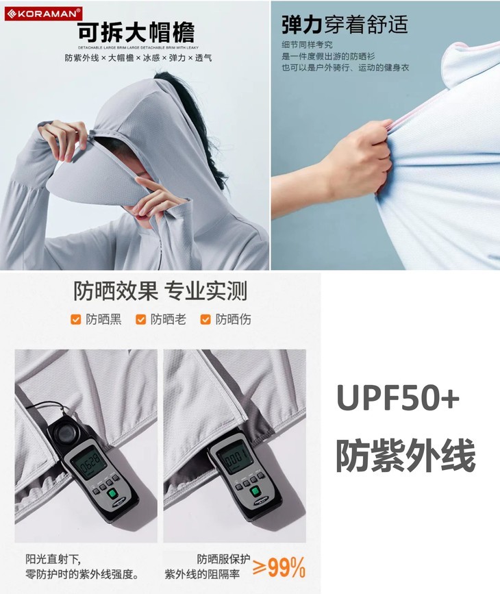 一般UPF值越大,防晒效果越好,UPF40+就可以满足日常通勤需要,户外旅行或长时间室外暴晒建议选择UPF50+。挑选的话主要还是看你是依轻薄透气为主,还是高防护,防风防泼水为主。