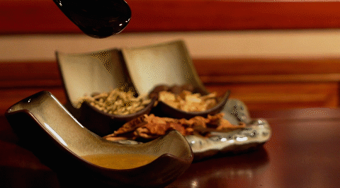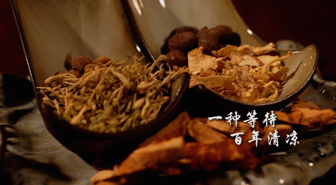 按照传统配方进行配比,加入了白芷、金银花、胖大海、茯苓、陈皮、罗汉果等润肺药材,经过古法九滤后取汁,放入榨好的梨汁中。