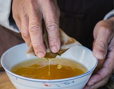 梨膏使用九炼九滤工艺,全程不加一滴水。整个过程中精心把控熬制火候,经过数小时熬煮直至滴注拉丝。