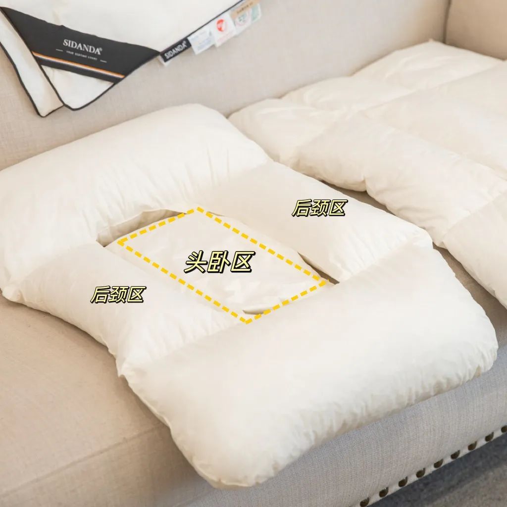 这样头、颈分区,躺下后能帮助颈椎保持反C的状态,帮助颈椎尽量保持健康的弧度。