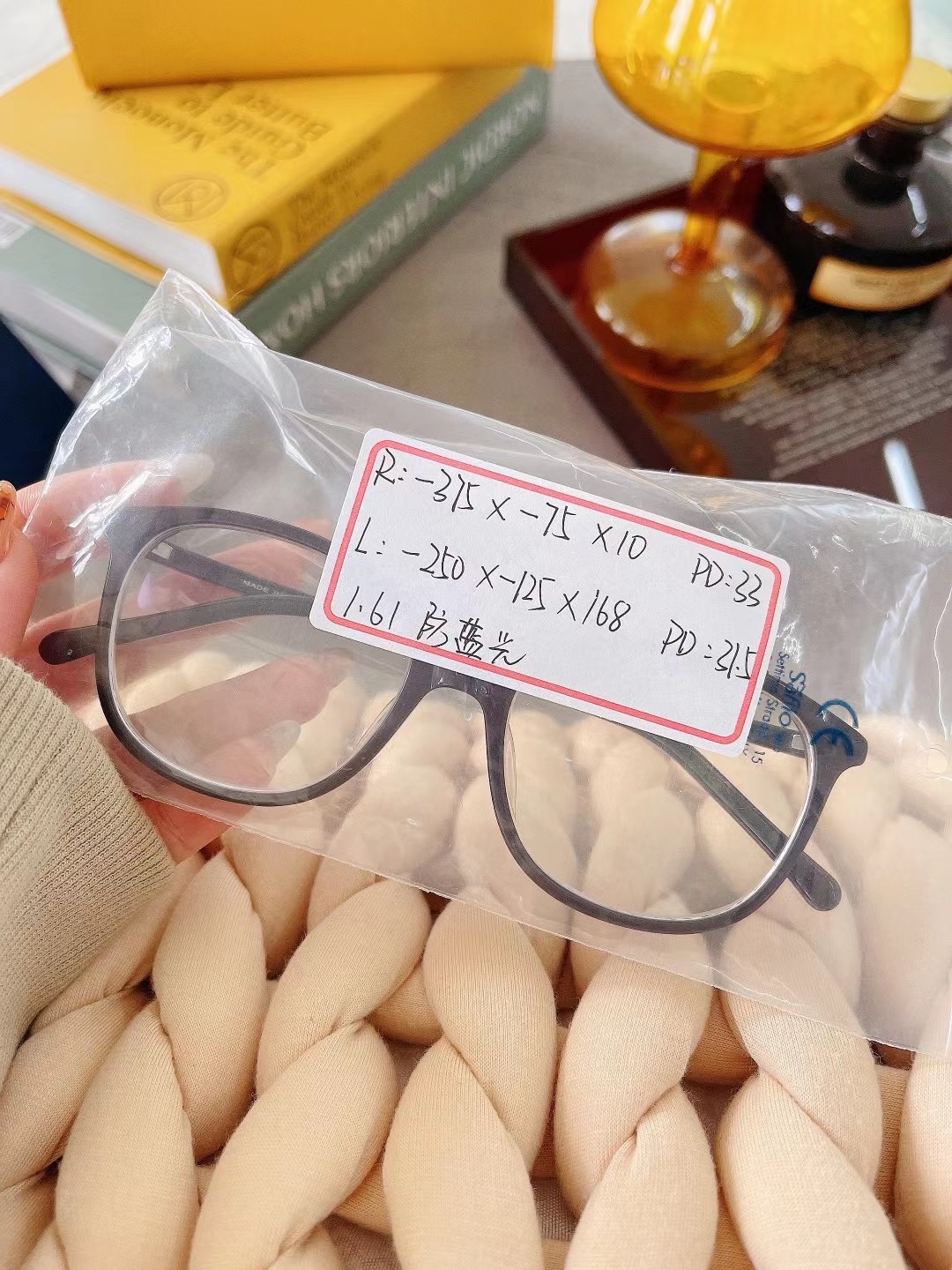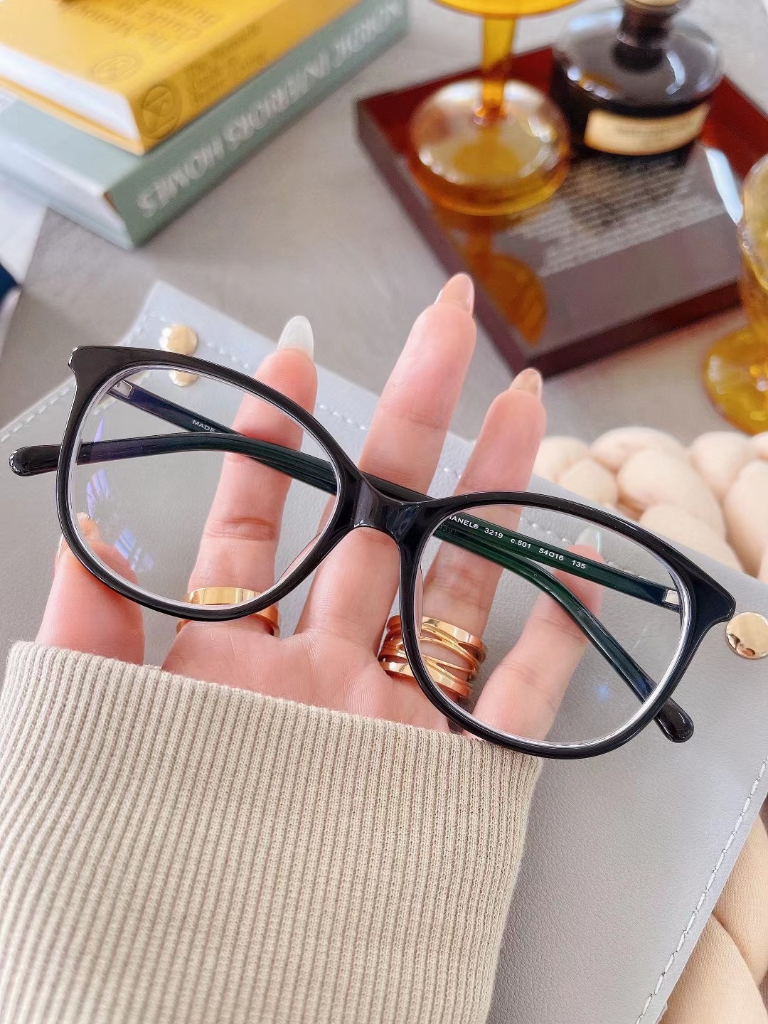 客配CHANEL复古黑框375/250度+75/125度散光 1.61防蓝光镜片