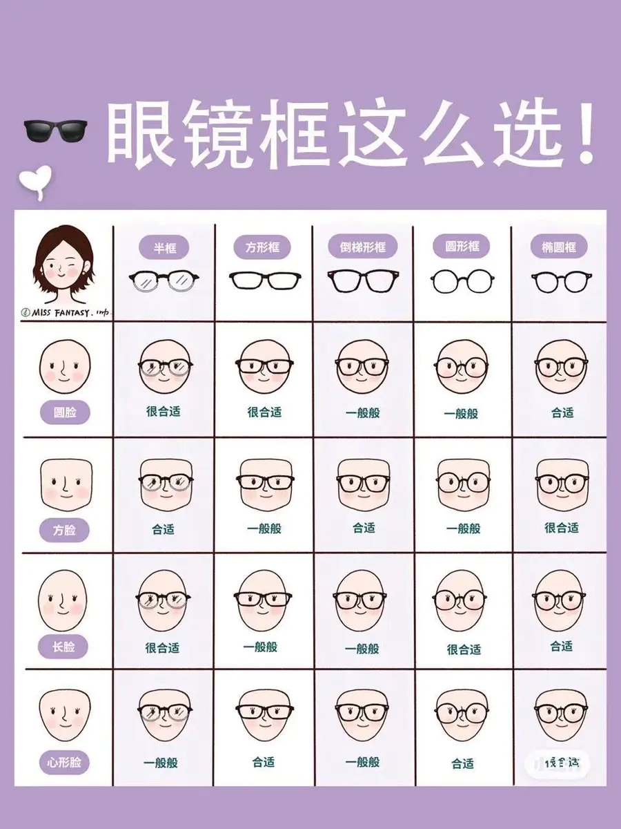 经常有同学说戴眼镜很难时髦,其实选对镜框就成功了一半🍩镜框怎么选🤕配脸型才是最重要~来看看对照图吧❗️