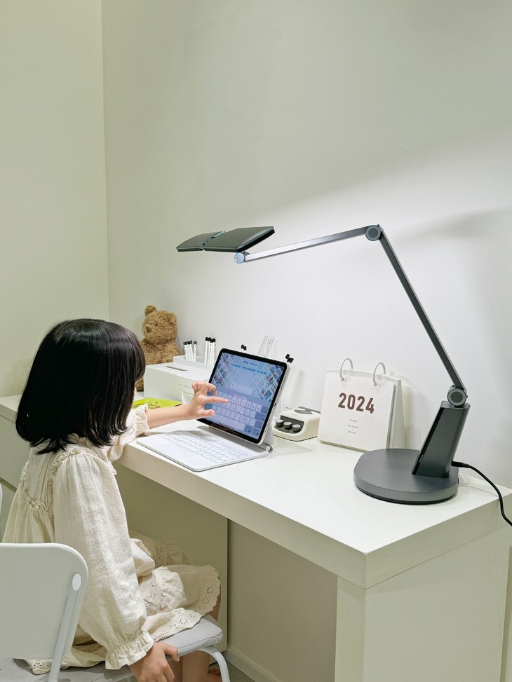 4️⃣双翼旋转,模式随心切换不像普通的台灯角度都是只能调节向下方向的,这款的调节可以达到195°双翼旋转,灯头可自由度调节,适配多场景。宝宝平时看可以听网课呀,学习呀,再也不怕暗区和反光了,孩子写作业没有重影,对眼睛更友好,能够预防近视。