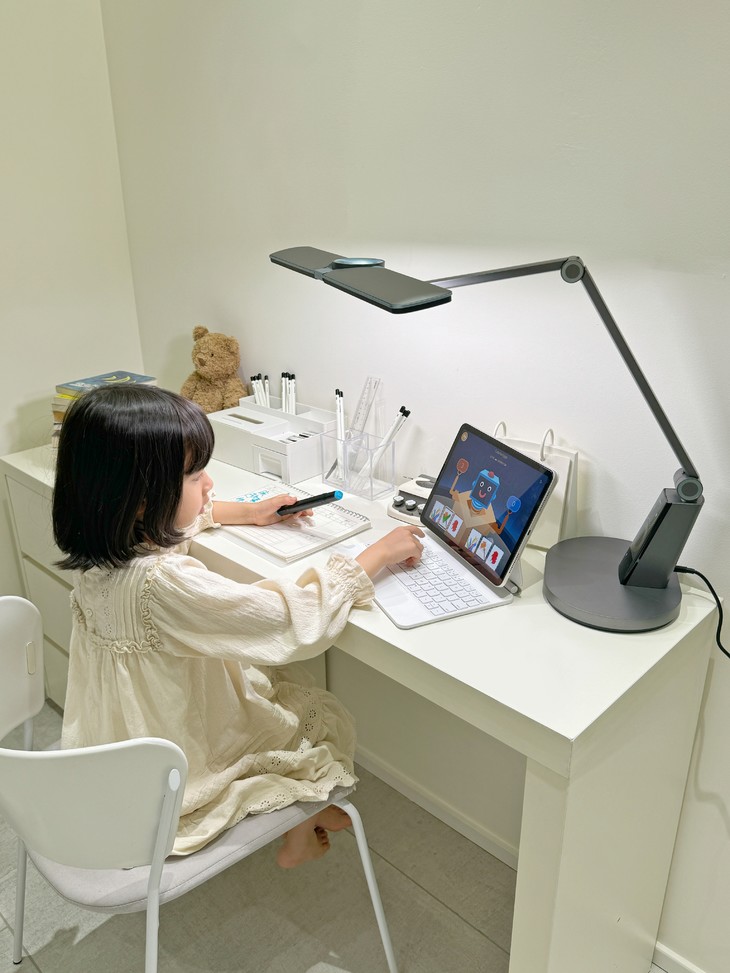 有我这个妈妈,我的女儿真的太幸福👏生活上妥妥帖帖,宠成小公主👸学习上也是认真的给做功课尤其是我家宝宝进入大班后,阅读练字画画用眼的时间和频率都大大提升所以也是时候给他选择合适的学习桌和护眼灯经过多方比较,终于找到了我心仪的台灯-欧普清澈光护眼灯👏毕竟是28年家喻户晓的大品牌之前儿童房也是欧普家的吸顶灯品质和使用感都是亲身体验过的所以更加放心这款台灯用了也有一段时间了护眼方面真是没得说欧普还是没让我失望
