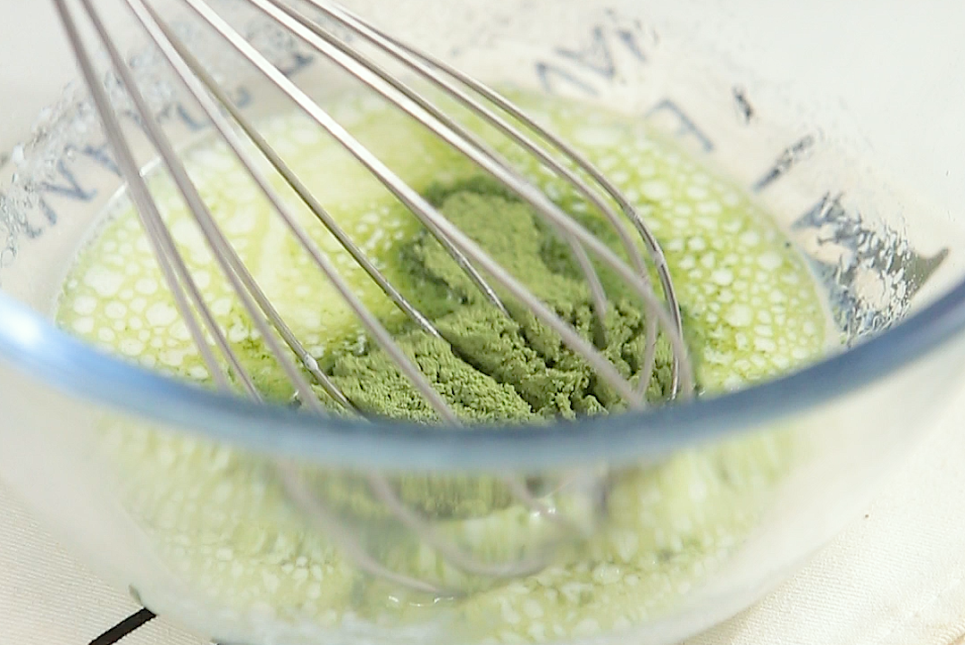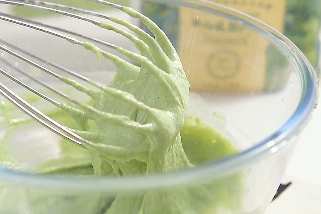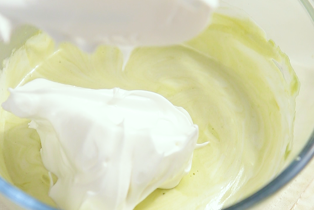 取1/3蛋白与抹茶蛋黄糊搅拌均匀