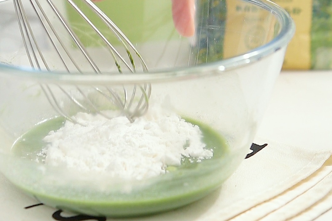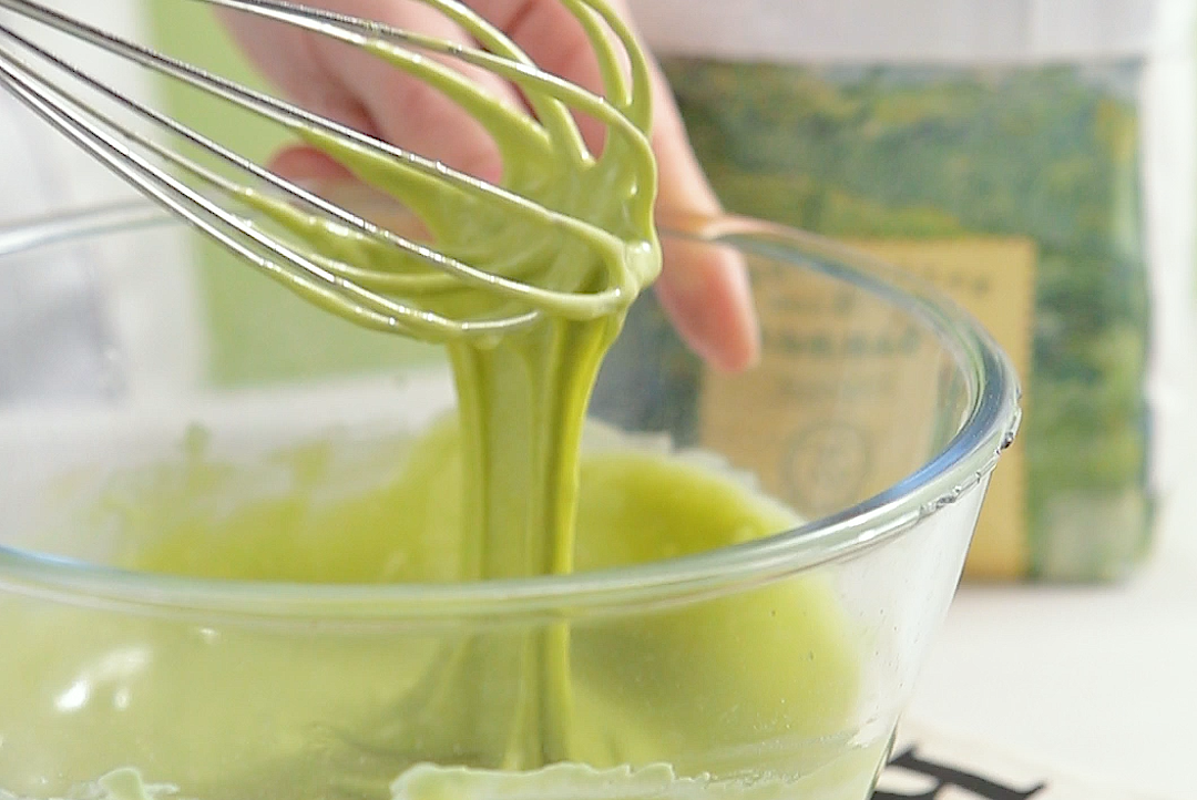 将牛奶,玉米油混合搅拌乳化,加入易小焙大麦苗粉搅拌均匀