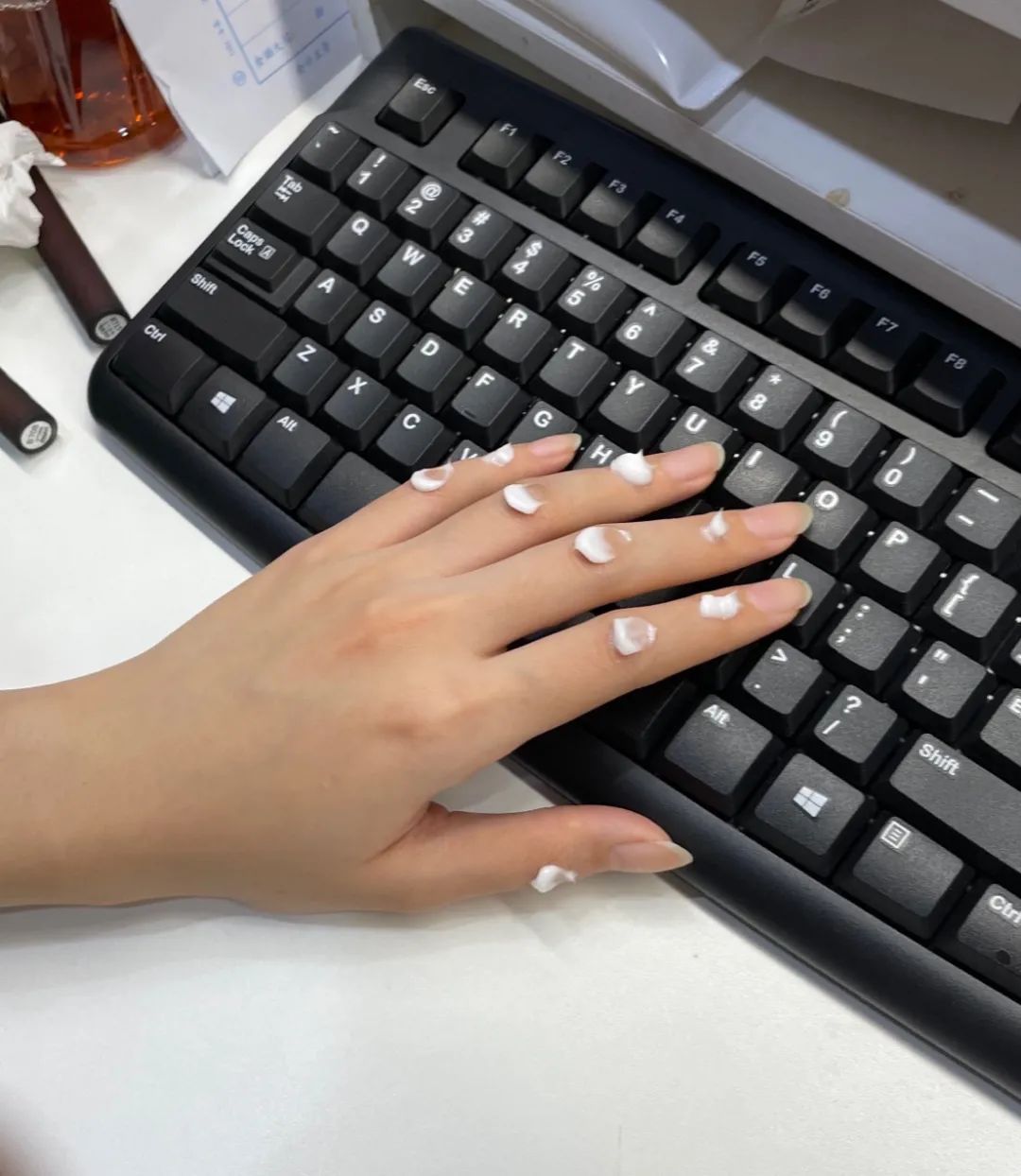 它家这支完全不会!护手霜挤出来是水润的奶霜质地,很好推开,而且很快吸收,一点也不油,后续打字摸键盘、鼠标、手机屏幕也是清清爽爽。